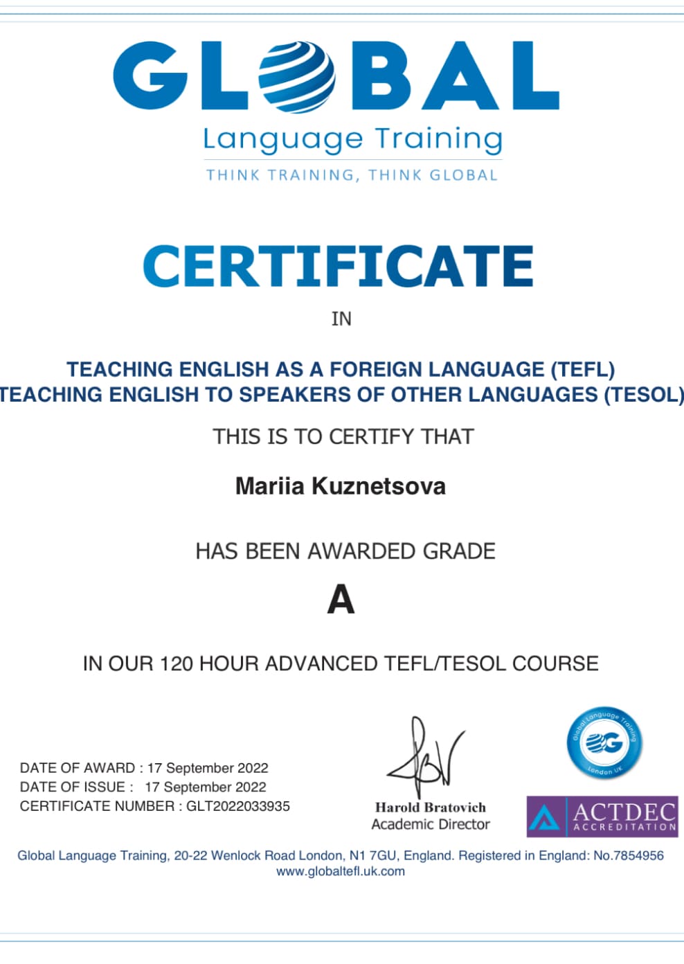 Спасибо вам огромное! Действительно Вике очень нравится заниматься с вами, она с интересом ждет занятия и домашнее задание! Раньше ей не очень нравился английский язык, она с трудом запоминала слова. А теперь я вижу результат! Ещё раз вам спасибо.